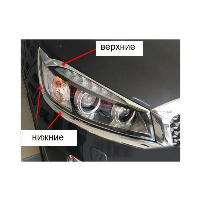 Хром накладки на передние фары - декоративный элемент для Kia Sorento (UM) 2015+. Накладки монтируются на передние фары придавая индивидуальность автомобилю. Продукция от компании "ASP" производится из качественного ABS-пластика. Установку можно произвести самостоятельно.