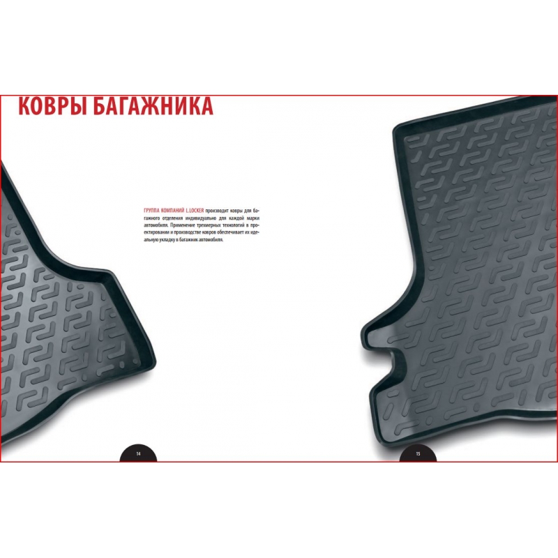 Коврик в багажник - препятствует загрязнению поверхности багажника автомобиля. Коврик имеет бортики, которые удерживают воду и грязь, препятствуя попаданию под коврик. Данная особенность позволяет быстро удалить мусор, попавший в багажник. Рисунок поверхности коврика создает антискользящий эффект. Модельные коврики от компании "LLocker" изготавливаются на современном оборудовании из качественного полиуретана под конкретную модель автомобиля. Материал резино-пластик в ковриках имеет более плотную структуру по сравнению с другими материалами, увеличивая эксплуатационные показатели. После установки, в багажном отсеке не остается зазоров.