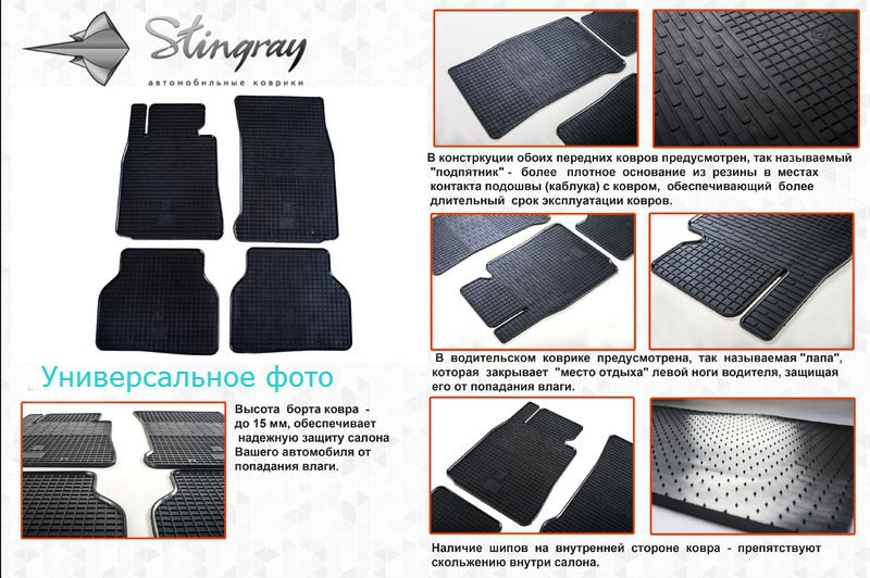 - По периметру бортики до 15 мм - Предусмотрен язычок для ноги - Предусмотрен "подпятник" - Идеально прилегает к полу автомобиля