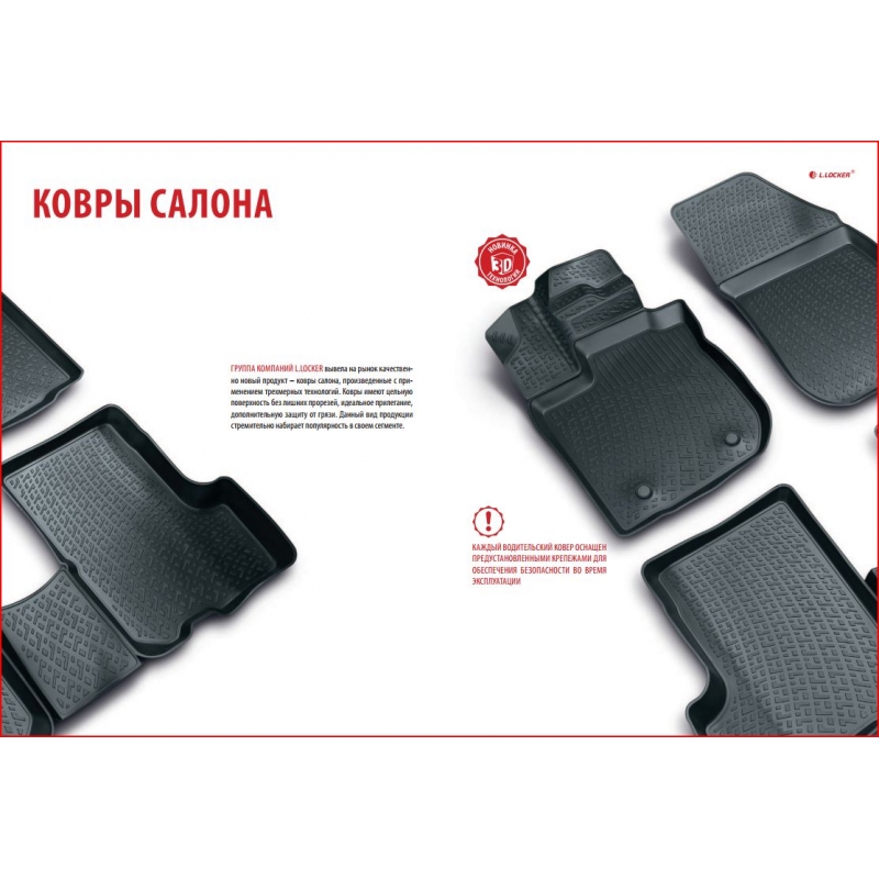 - Полностью покрывают поверхность пола. - Быстро чистятся. - Рисунок ковриков устойчив к стиранию. - Предусмотрена возможность фиксации на штатные крепежи. - Высокий бортик до 40 мм.