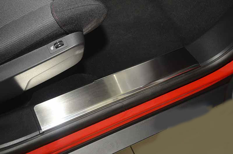 Известная компания "Nata-Niko" для производства использует нержавеющую сталь (0,5 мм). Накладки эффективно уменьшают воздействие на внутреннюю поверхность порогов или помогут скрыть уже имеющиеся дефекты и изъяны. Накладки проектируются под конкретную модель автомобиля и точно повторяют все изгибы кузова.
