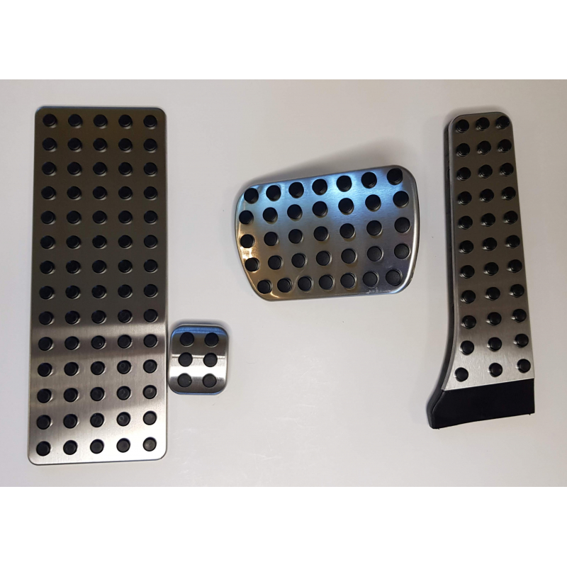 Накладки на педали выполнены из нержавеющей стали и резиновой вставки. Предназначены для установки на автомобиль Mercedes-Benz с АКПП. Надежно фиксируются на педалях (БЕЗ СВЕРЛЕНИЯ - НА ШТАТНЫЕ МЕСТА).
