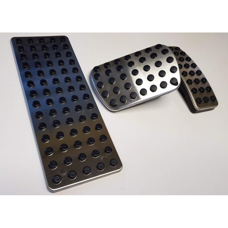 Накладки на педали выполнены из нержавеющей стали и резиновой вставки. Предназначены для установки на автомобиль Mercedes-Benz с АКПП. Надежно фиксируются на педалях (БЕЗ СВЕРЛЕНИЯ - НА ШТАТНЫЕ МЕСТА).