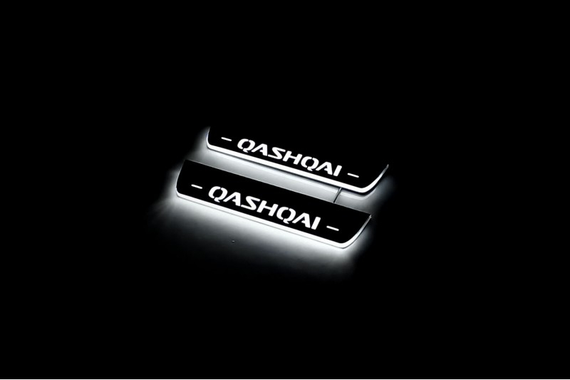 Накладки с LED подсветкой - предназначены для защиты лакокрасочного покрытия порогов Nissan Qashqai I 2007-2014. Накладки проектируются под конкретную модель автомобиля. Устанавливаются на 3M-скотч (в комплекте).