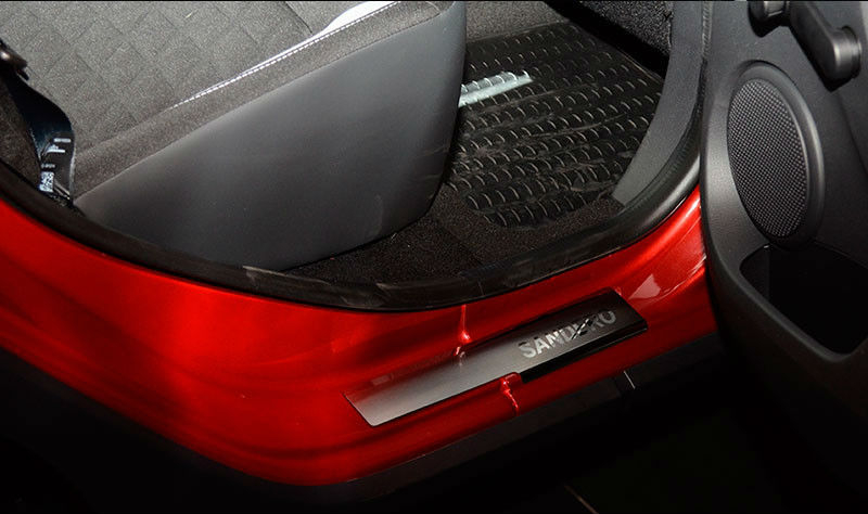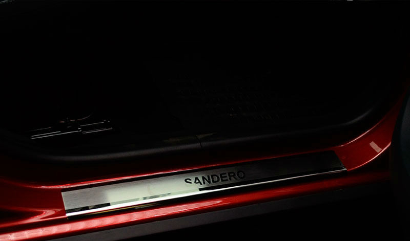 Накладки на пороги - предназначена для защиты лакокрасочного покрытия порогов Renault/Dacia Sandero II 2013+. Накладки от компании "Nata-Niko" производятся из высокопрочной нержавеющей стали (0,5 мм) которая уменьшит воздействие на покрытие порогов или скроет уже имеющиеся дефекты. Накладки вырезаются лазером для обеспечения максимального прилегания и точного повторения всех особенностей данного автомобиля. Установка производится на 3М-скотч входит в комплектацию. После установки накладка надежно фиксируется на кузове автомобиля.