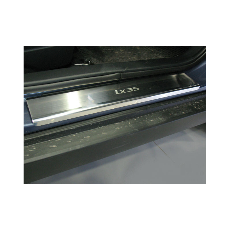 Накладки на пороги - предназначены для защиты лакокрасочного покрытия порогов Hyundai IX35 2010+. Накладки от компании "Nata-Niko" производятся из высокопрочной нержавеющей стали (0,5 мм) которая уменьшит воздействие на покрытие порогов или скроет уже имеющиеся дефекты. Накладки вырезаются лазером, что обеспечивает максимальное прилегание к кузову автомобиля. Установка производится на 3М-скотч (входит в комплектацию). После установки накладка надежно фиксируется на кузове автомобиля.