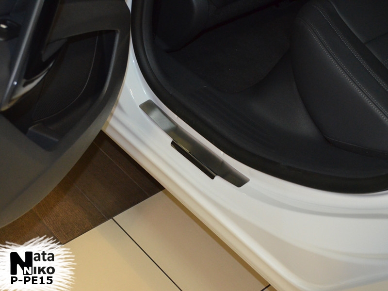 Накладки на пороги - предназначены для защиты лакокрасочного покрытия порогов Peugeot 508 2011+. Накладки от компании "Nata-Niko" производятся из высокопрочной нержавеющей стали (0,5 мм) которая уменьшит воздействие на покрытие порогов или скроет уже имеющиеся дефекты. Накладки вырезаются лазером, что обеспечивает максимальное прилегание к кузову автомобиля. Установка производится на 3М-скотч (входит в комплектацию). После установки накладка надежно фиксируется на кузове автомобиля.
