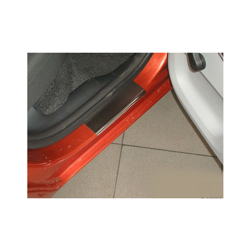 Накладки на пороги - предназначены для защиты лакокрасочного покрытия порогов Skoda Fabia II 2007-2014. Накладки от компании "Nata-Niko" производятся из высокопрочной нержавеющей стали (0,5 мм) которая уменьшит воздействие на покрытие порогов или скроет уже имеющиеся дефекты. Накладки вырезаются лазером, что обеспечивает максимальное прилегание к кузову автомобиля. Установка производится на 3М-скотч (входит в комплектацию). После установки накладка надежно фиксируется на кузове автомобиля.