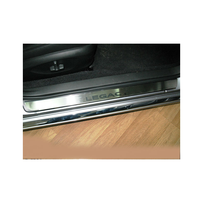 Накладки на пороги - предназначены для защиты лакокрасочного покрытия порогов Subaru Legacy IV 2003-2009. Накладки от компании "Nata-Niko" производятся из высокопрочной нержавеющей стали (0,5 мм) которая уменьшит воздействие на покрытие порогов или скроет уже имеющиеся дефекты. Накладки вырезаются лазером, что обеспечивает максимальное прилегание к кузову автомобиля. Установка производится на 3М-скотч (входит в комплектацию). После установки накладка надежно фиксируется на кузове автомобиля.